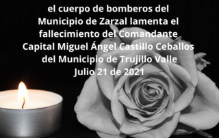 el cuerpo de bomberos del Municipio de Zarzal lamenta el fallecimiento del Comandante Capital Miguel Ángel Castillo Ceballos del Municipio de Trujillo Valle