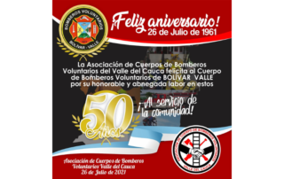 la asociación de cuerpos de Bomberos Voluntarios del Valle felicita al cuerpo de Bomberos de Bolívar Valle por sus 50 Años de Servicio