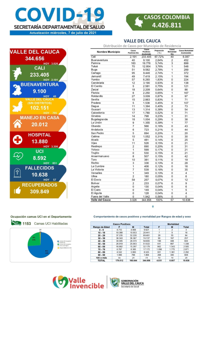 ESTADISTICA DEL COVID-19 EN EL VALLE DEL CAUCA