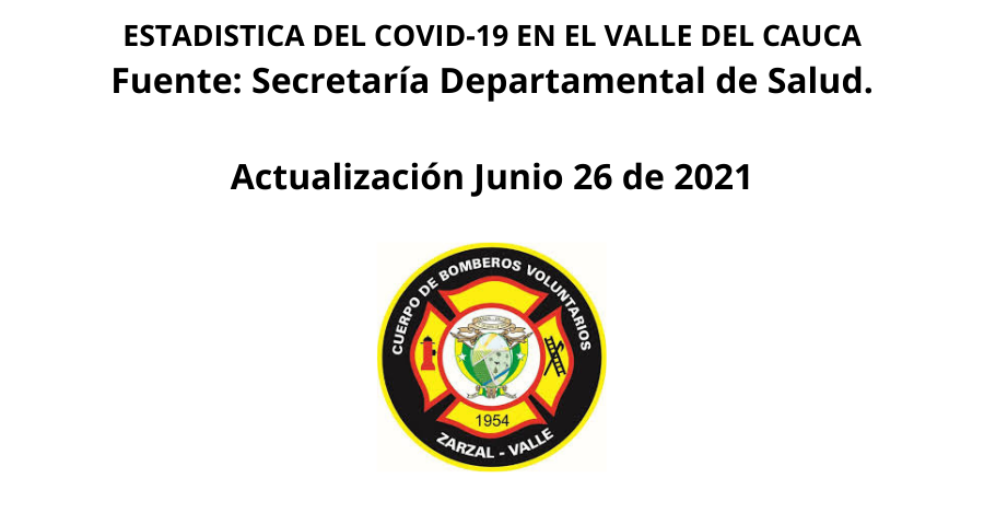 ESTADISTICA DEL COVID-19 EN EL VALLE DEL CAUCA Fuente: Secretaría Departamental de Salud. Actualización Junio 26 de 2021 Boletín26062021